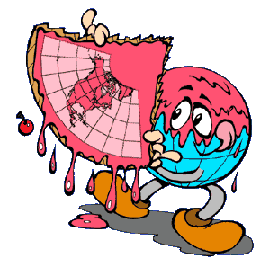 A bola de sorvete é o globo terrestre. Em torno dele, imagine
