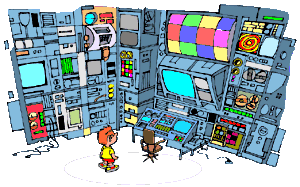 Você resolve ligar seu computador para navegar no Canal Kids. Para isso, vai até um quarto enorme, maior do que um apartamento de dois quartos. Nesse lugar, as paredes são cobertas por máquinas, como se fossem armários. Nelas, há centenas de botões, fios pendurados e dezenas de luzes que não param de piscar. Para apertar o botão de ligar, você começa a suar frio, porque não sabe onde diabos ele está. Por isso, pede a ajuda de dois técnicos que monitoram o computador, dia e noite, dentro dessa sala.